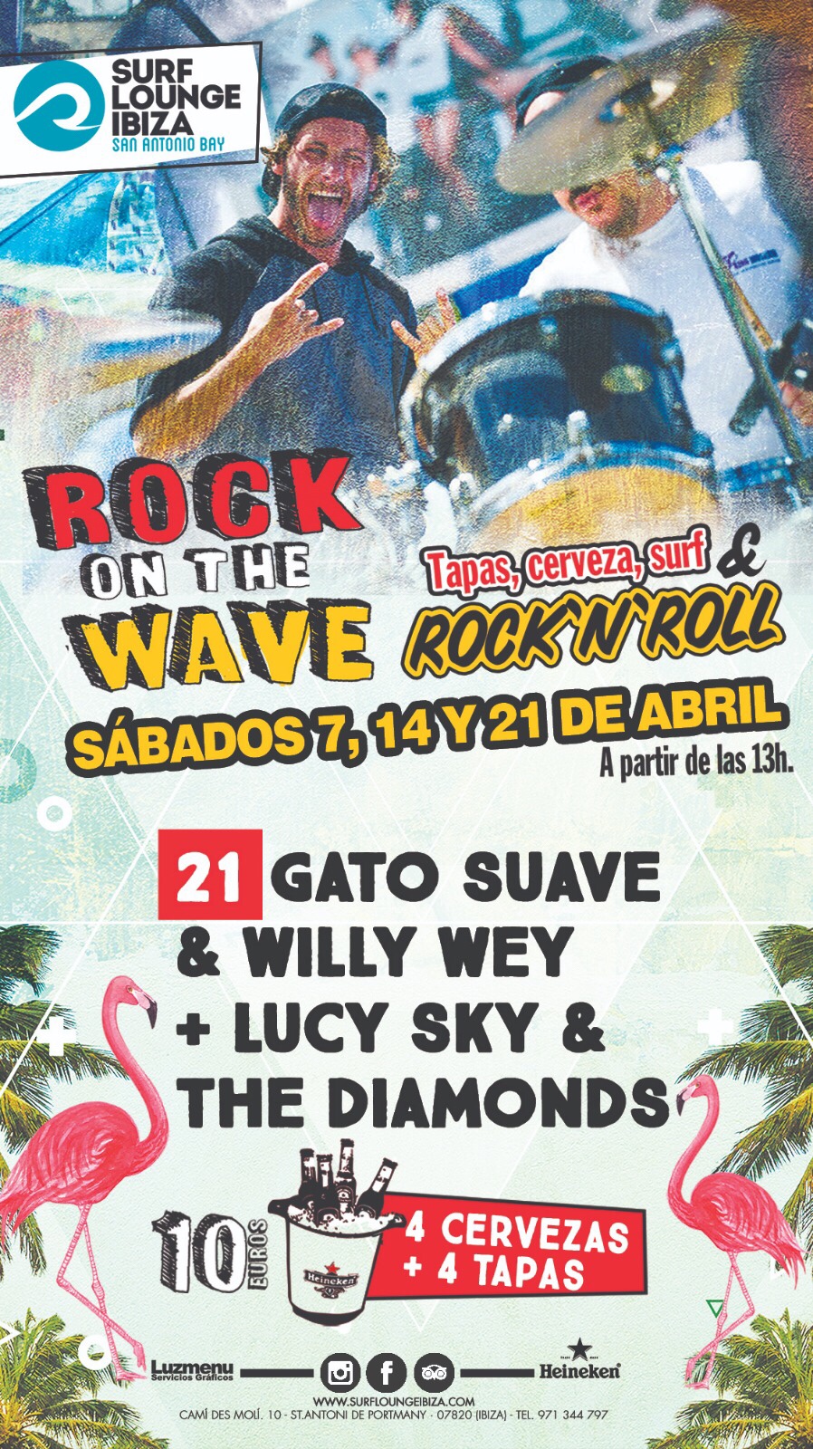 If you couldn’t assist to our previous ROCK ON THE WAVE, don’t worry, here’s your last chance… This time, with the best rock music played by Gato Suave Soundsystem IBIZA & Willy Wey + Lucy Sky & The Diamonds on April the 21st, from 13:00h till sunset.